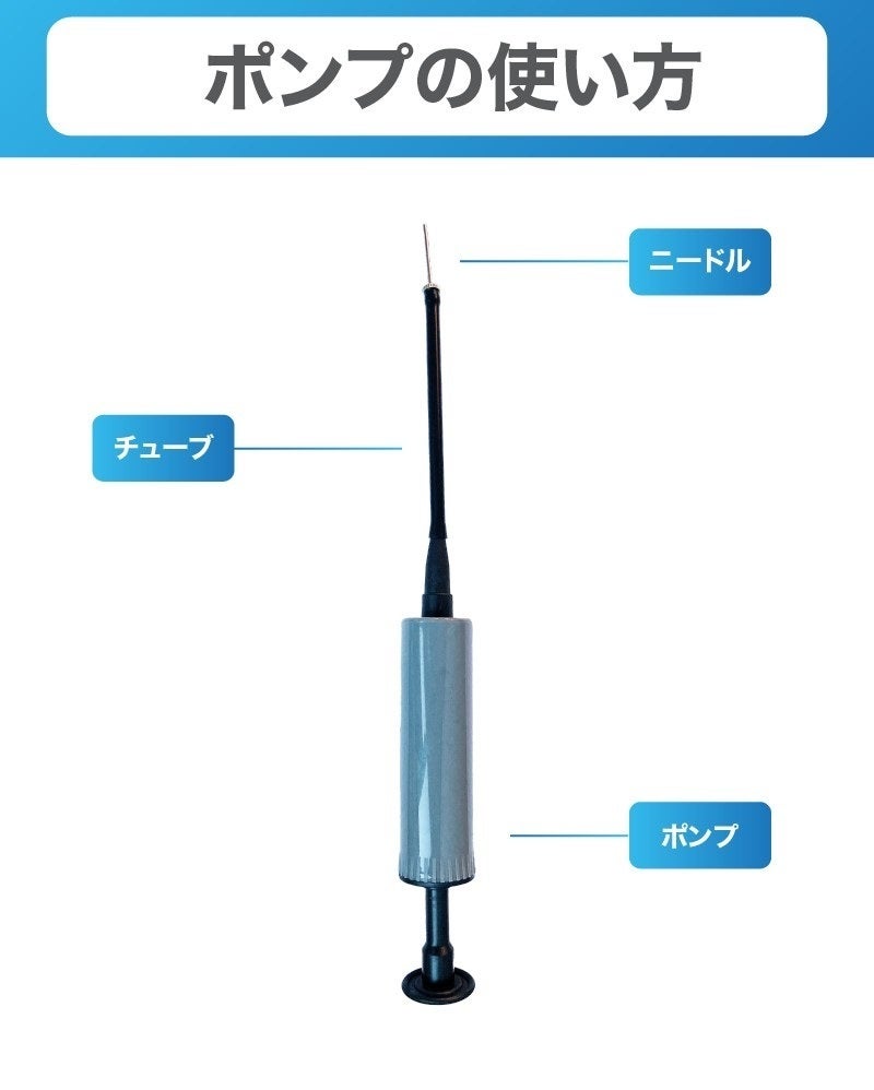 シートの注入口に注入用ニードルを奥までしっかり入れて空気を注入します。
