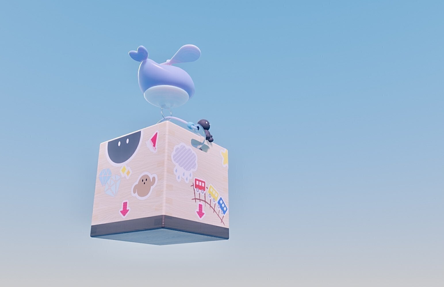 ふと見上げてみるとおもちゃ箱の上部分はくじらさんが持ち上げてくれていますね。