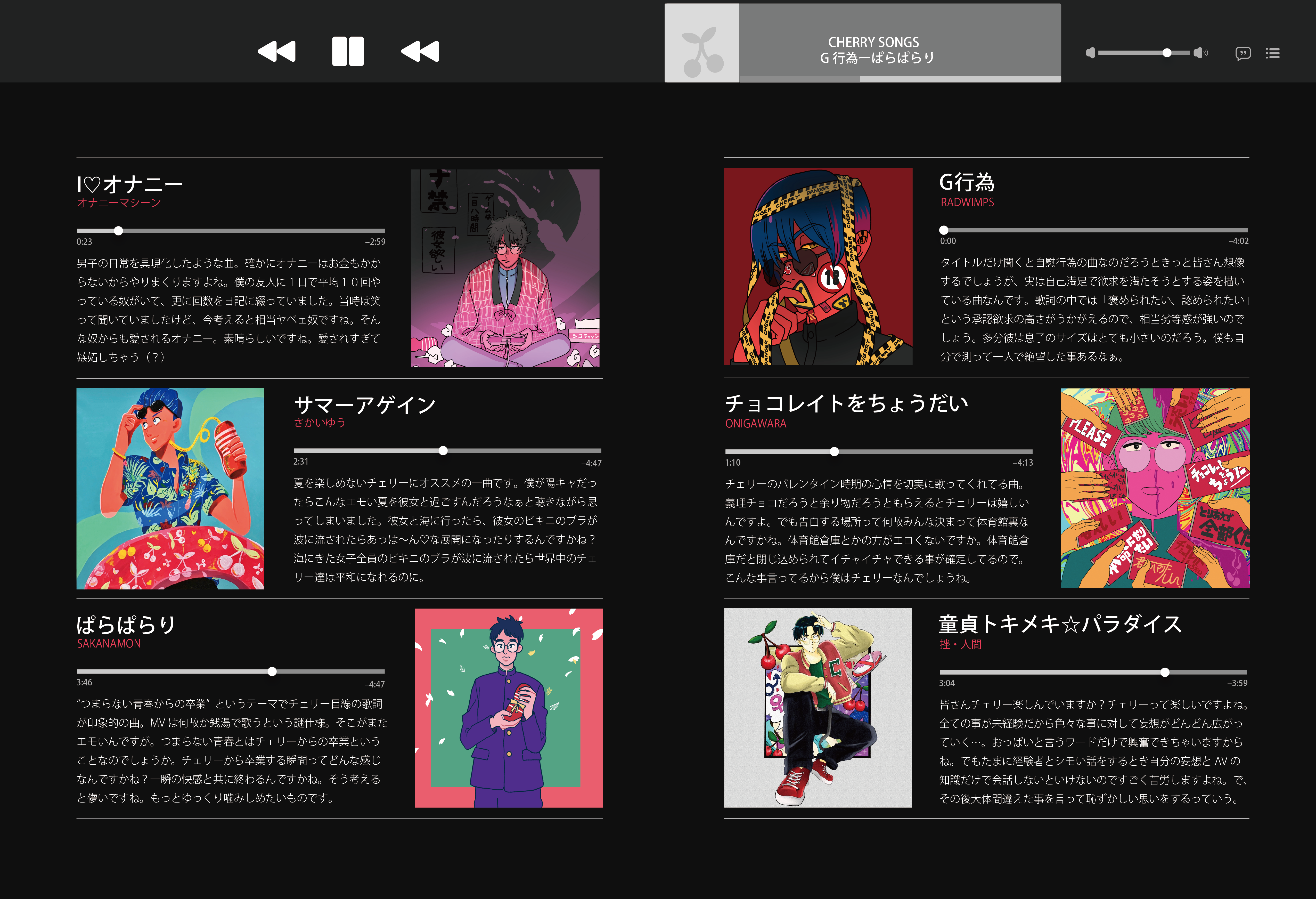 しかしチェリーというテーマはセンシティブなものでもあるので、制作する際はポップに表現をし、見ている方々が不快に感じず、思わずクスッと笑えるようなものを作るよう心掛けました。