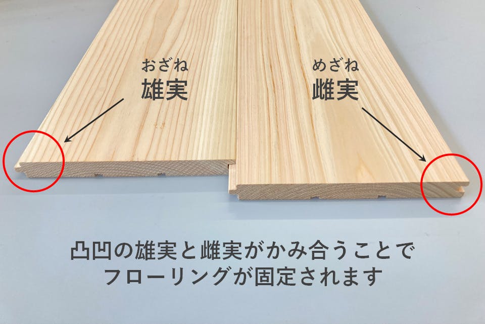 フローリング材には、「本実加工(ほんざねかこう)」という加工が施されています。
