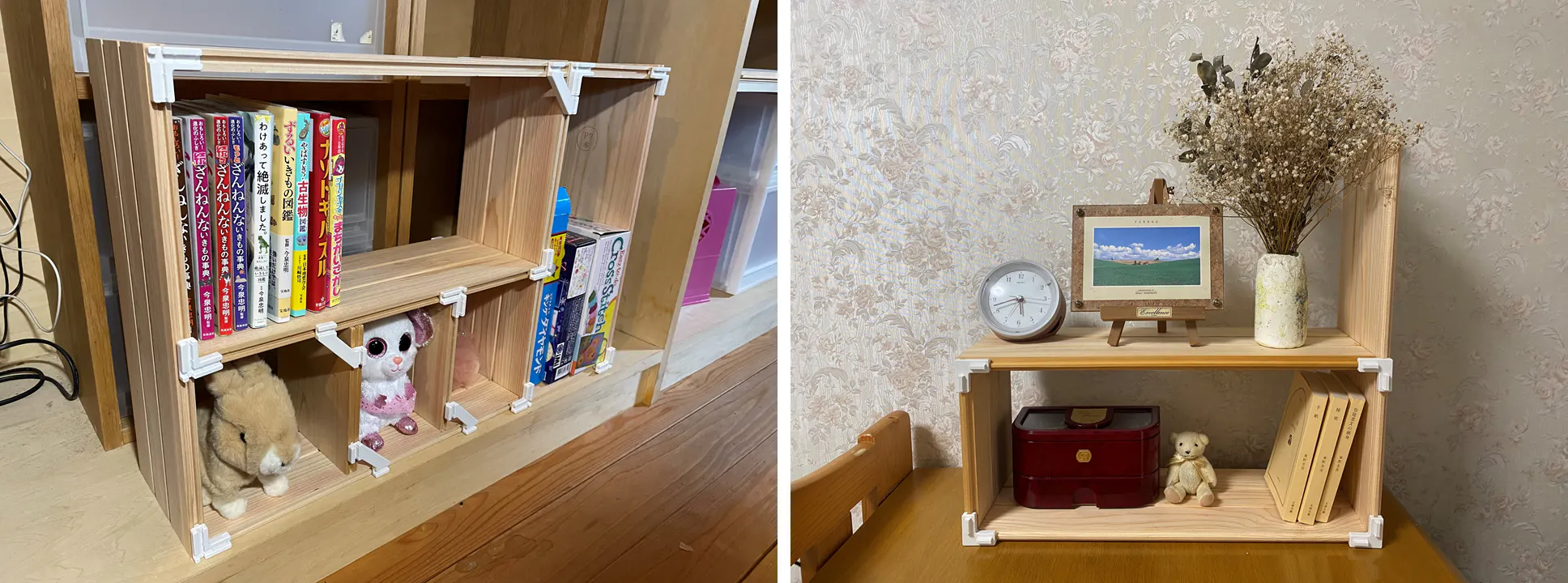 このジョイントパーツによって、自由な位置で板を組み合わせることが可能になりました。