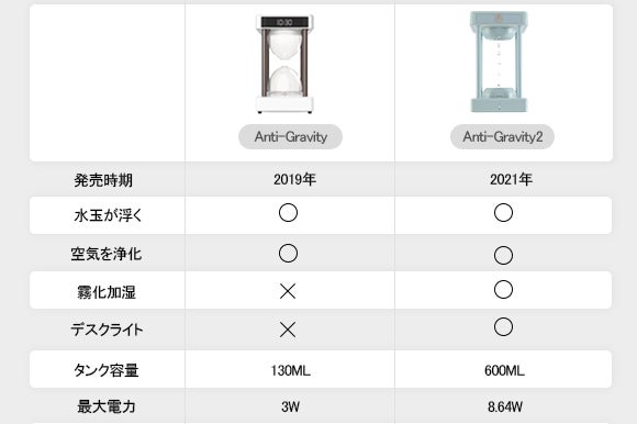※第一世代のAnti-Gravityに続き、最新的でマルチのAnti-Gravity2加湿空気清浄機