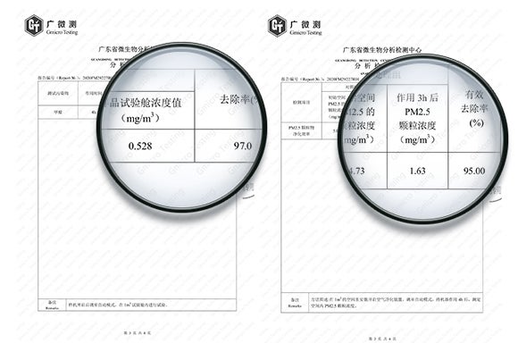 2、ホルムアルデヒド除去率95%、PM2.5除去率97%!深呼吸できそうな本格派空気清浄機能。