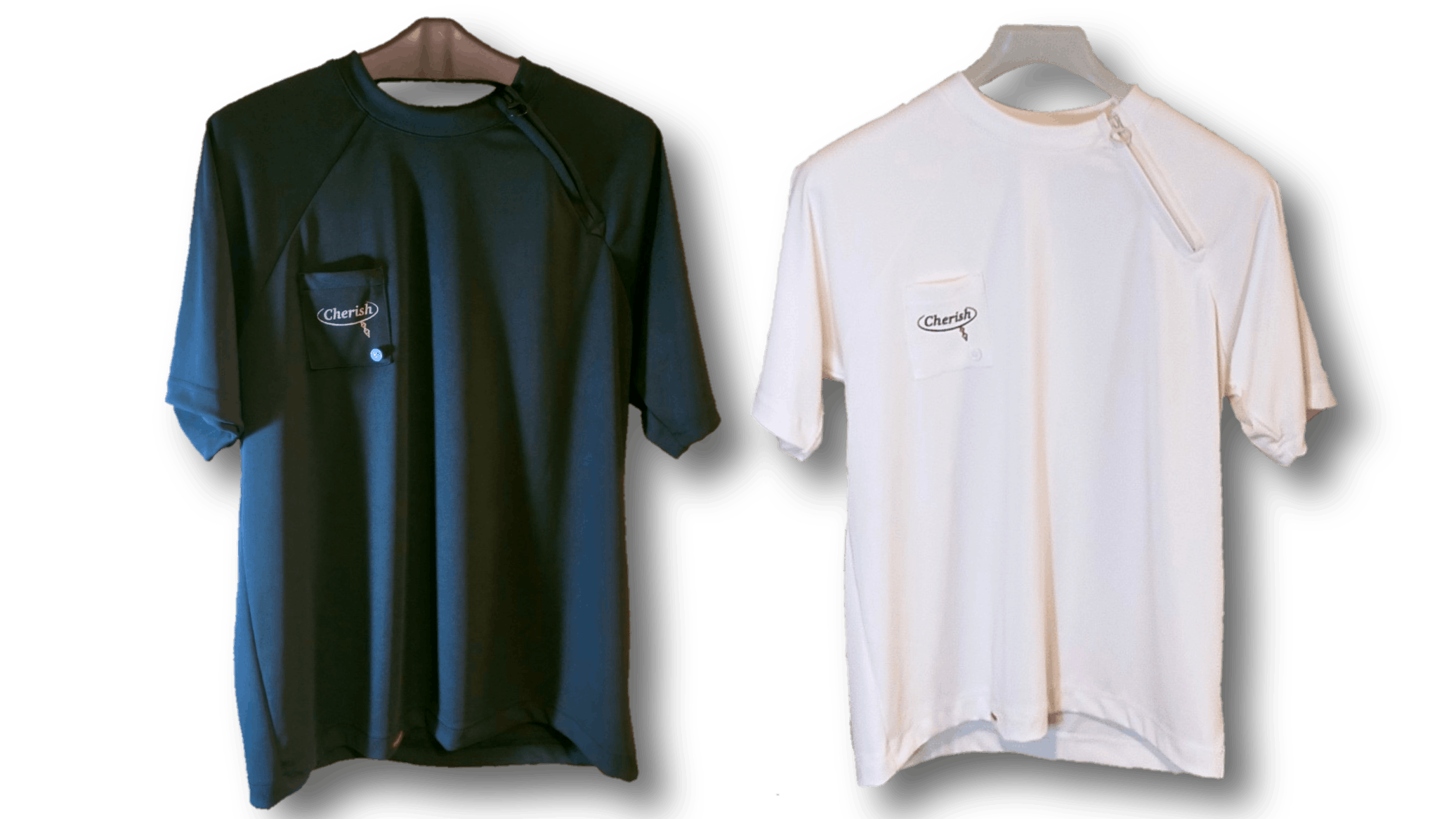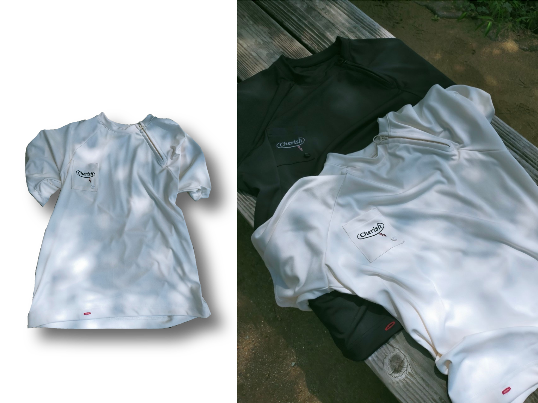 そんな普段の生活からどうにかハンディキャップを持つ人が自分で着脱しやすい服が作れないか?と開発したのがこのTシャツです。