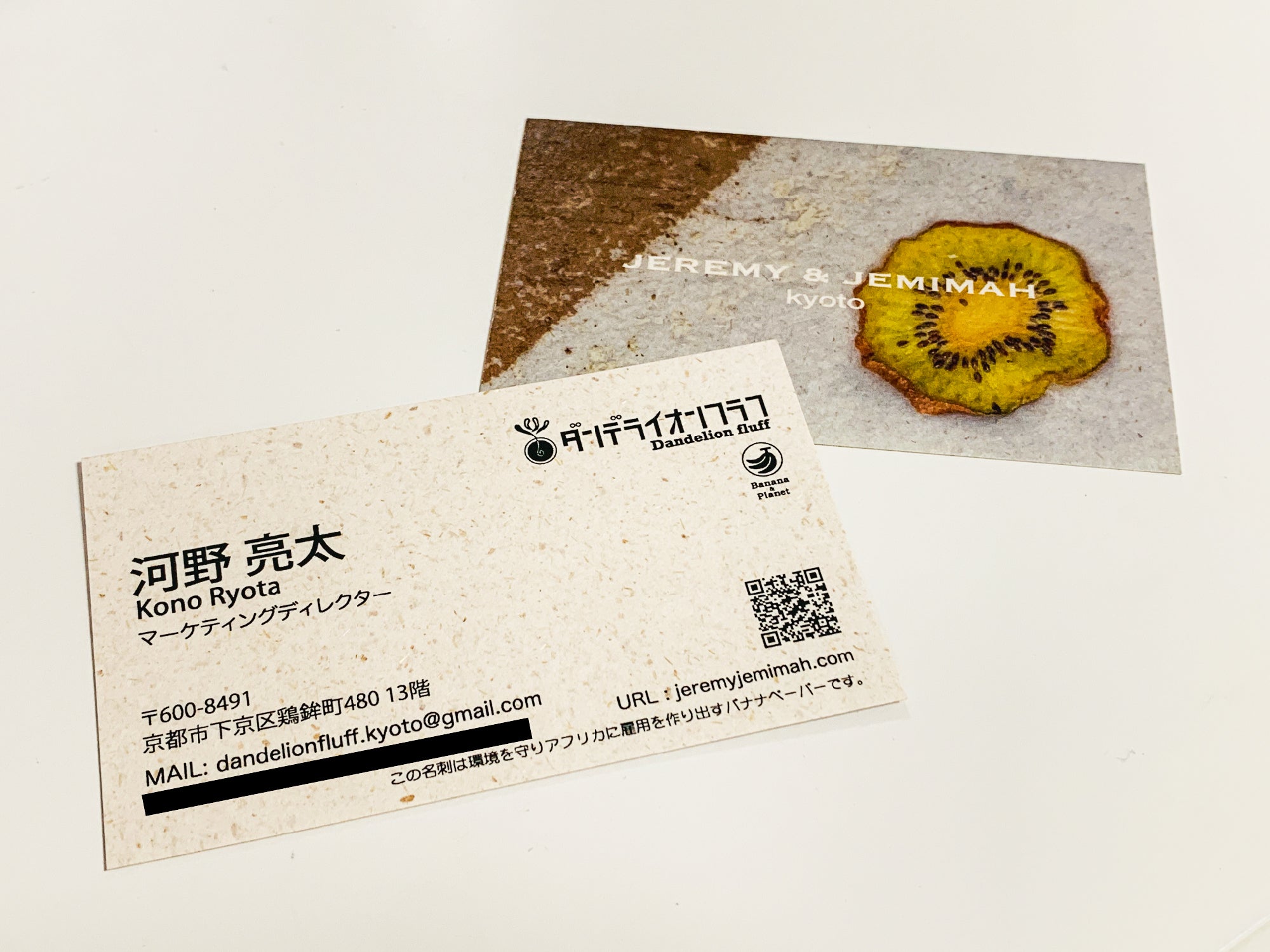 自分たちはどの役職に当たるのかを考え、背面が全員異なった綿菓子の柄にしているのがこだわり!SDGsの観点から、循環を意識した素材(バナナペーパー)を選びました。