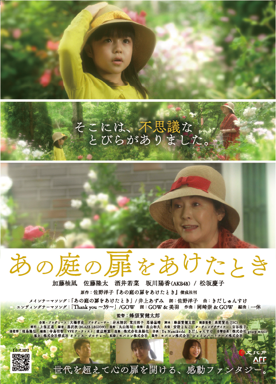 世代を超えて読みつがれるミリオンセラー絵本『100万回生きたねこ』や、『神も仏もありませぬ』など、数々のエッセイでも知られる、あの絵本作家・佐野洋子さんの、童話『あの庭の扉をあけたとき』を映画化したい。小さな女の子と、歳をとったおばあさんとの、世代を超えた気持ちの共感を、たくさんの人々に伝えたい。そして、子どもたちの生き生きとした表情と演技を、映画の中で構築させたい。そんな想いから、映画「あの庭の扉をあけたとき」の企画は2015年に立ち上がりました。そして監督を始めとするスタッフ・関係者、そして出演者や地域の方々など、たくさんの人の協力があり、映画「あの庭の扉をあけたとき」は無事2021年6月に撮影を終え、編集作業に移り、2022年の全国公開を目指しています。