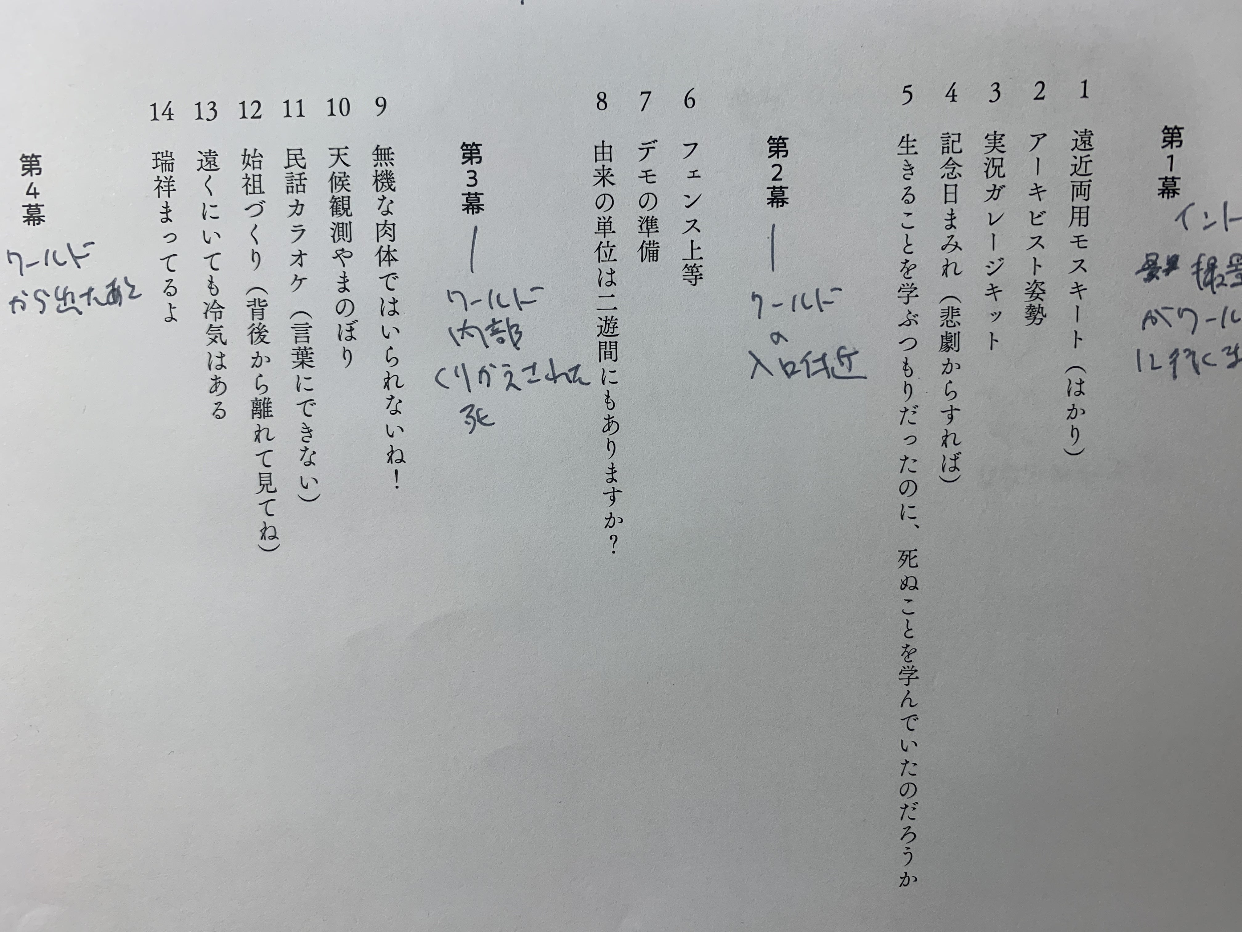 戯曲は四幕。それぞれの場の名前も、なんだか面白そう。