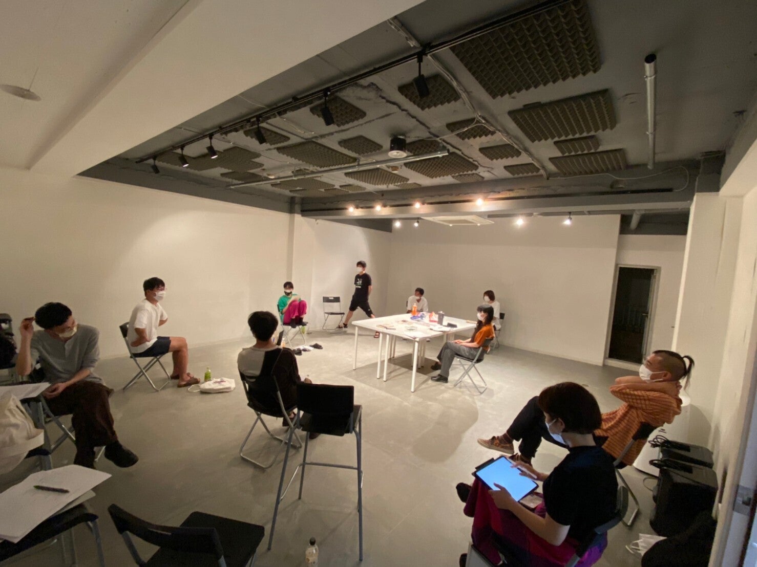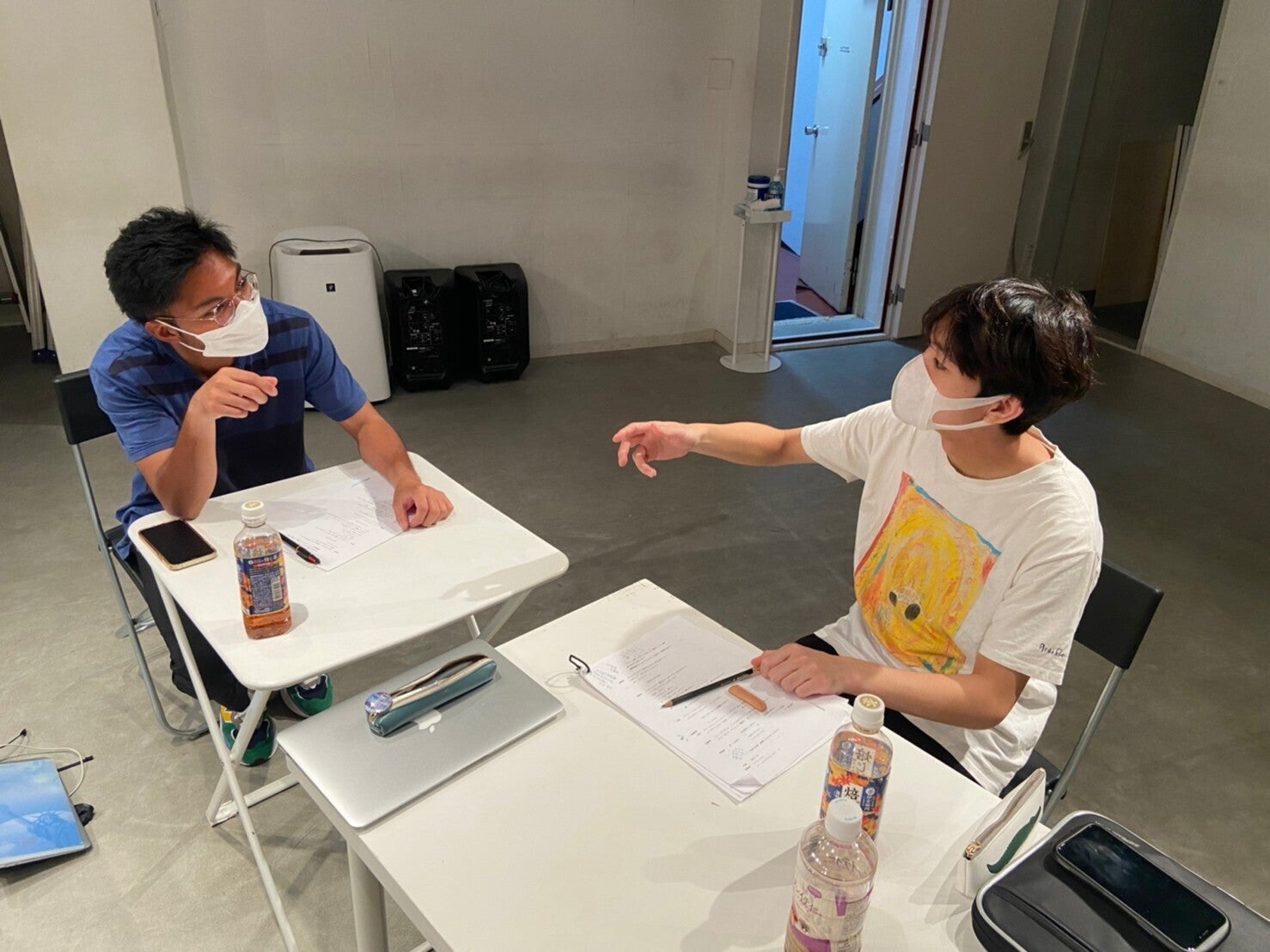 みなさんこんばんは。お仕事終わりのみなさん、今日もおつかれさまです。Dr. Holiday Laboratoryの制作の小野寺です。今日は『うららかとルポルタージュ』二回目の稽古の様子をお伝えします。初回の稽古のあとに配役が決まり、二回目の稽古は前半に話し合い(愛・予言・奇跡などについて。文字にすると果てしない問い……)、後半に決まった配役で読み合わせ、最後に少し立ち稽古という流れでした。途中で山本浩貴さんの改行詩に関するレクチャーもありました。(読み合わせの様子。感染症対策のため人と人との距離を取り、換気を徹底しています)今回の戯曲は座って読み合わせをしているだけではなかなか難しいということで、稽古は二回目ですが最後に立ち稽古をしてみました。BUoYの中央の柱を脚立に見立てて、観客に見える範囲を意識します。立ち稽古は最初のシーンから始めました。山本伊等の演出がぽんぽん入り、俳優が各々動き出し、ベタですが今この瞬間に、戯曲が立ち上がっている……!ということにドキドキしました。コロナでなかなか公演をできない状況が続いていたので、やっとスタートラインに戻ってくることができたような気がして感無量です。(立ち稽古の様子。事前にPCR検査を行い、立ち稽古のときのみ俳優はマスクを外しています)クラウドファンディングはなかなか厳しい状況が続いています。54人もの方々にすでにご支援をいただいていて、もう自分たちの知り合いの大半の方にはご支援いただいたのに、残り65%どうしたらいいんだろうと悲観的になってり落ち込んだり一喜一憂する毎日です……。泣いても笑っても、稽古はノンストップで本番まで進みます。クラウドファンディングも残り24日間、頑張りたいと思います。最後まで応援よろしくお願いいたします!すでにご支援いただいたみなさんも、周りの方におすすめいただけるとうれしいです!