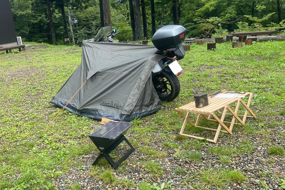 キャンプ場のバイカー専用スペースを考慮した設計で、省スペースサイズ、コンパクト収納を実現しました!