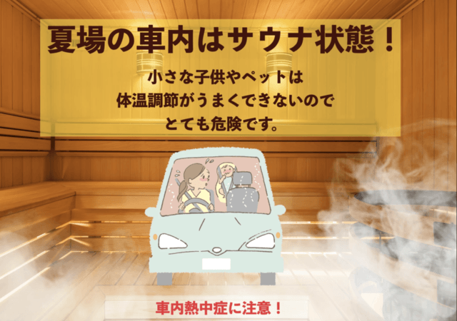 真夏の炎天下では車内温度が70度を超え、命が危険に晒されます。