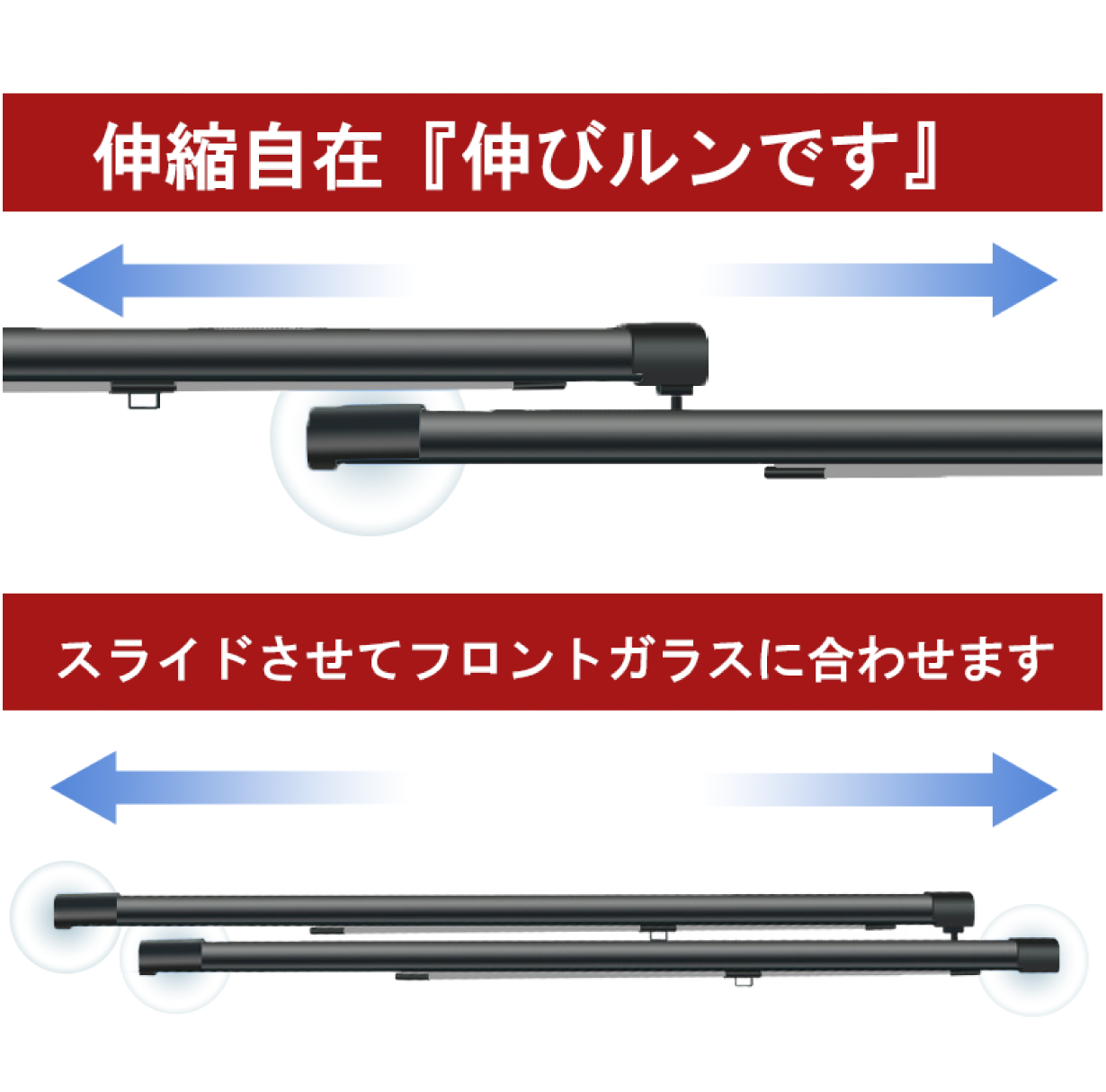 ④最大143cmのフロントガラスの幅に対応
