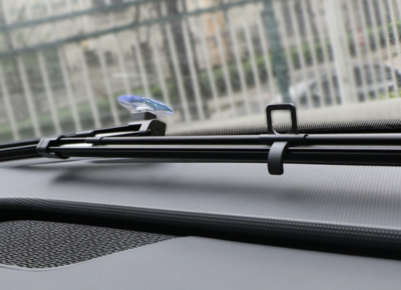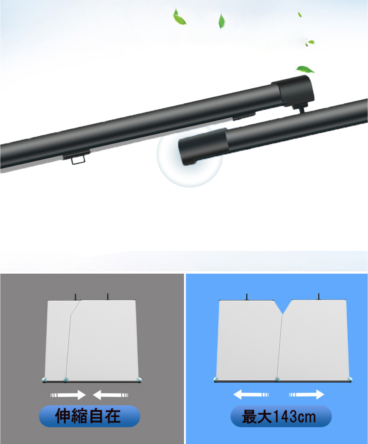 左右にパイプを引き伸ばしながらフロントガラスの幅に合わせてセットするので、軽自動車から小型トラックまで幅広い車種に対応可能です(窓幅 最大143cmまで)