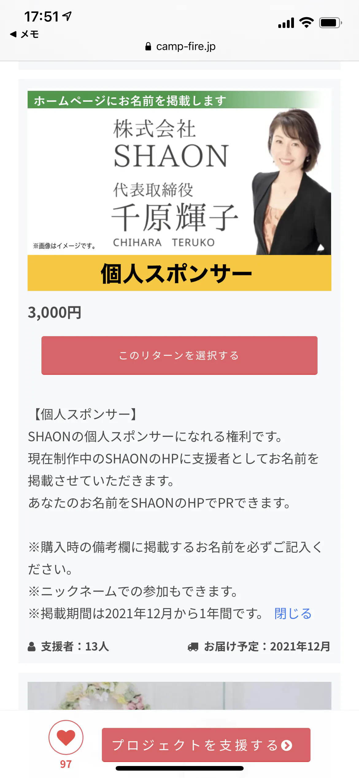 ホームページにお名前を載せる個人スポンサーのリターンがボリューム満点に(≧∀≦)