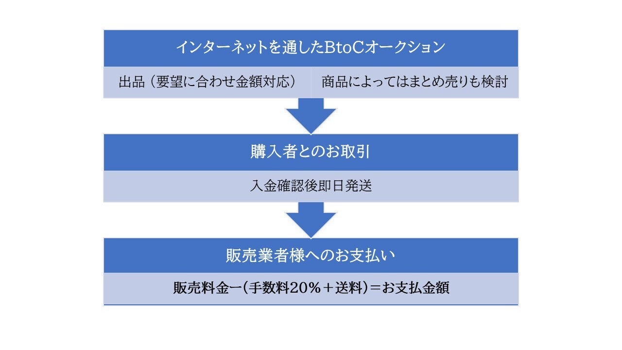 ●出品価格、即決価格などは事業者様と事前に打ち合わせをさせて頂いて決定。