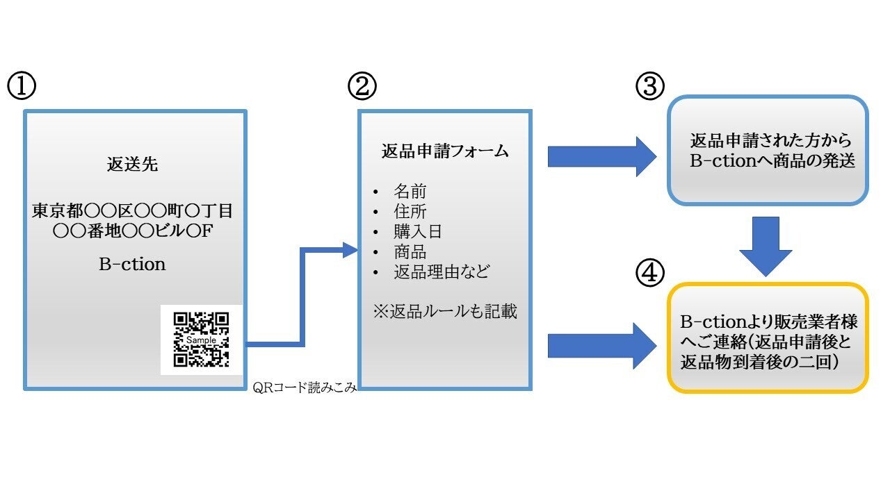 ①販売業者様に返送先をB-ctionに設定して頂く。