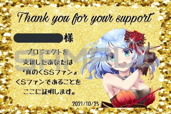 コース内容のリターンである品物+おまけで『くらファン認定証』の現物のカードまでついてきます!!