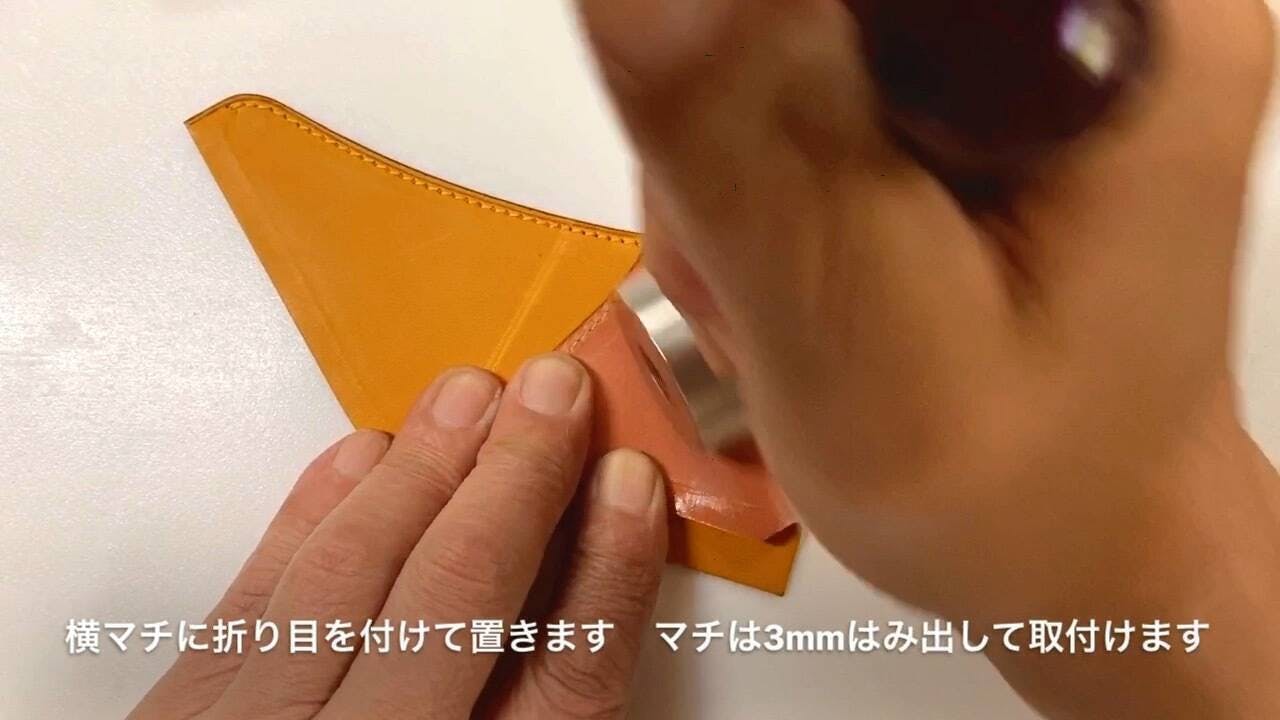 7-1で作った前胴を横マチと取り付けます。縫製した後にミガキの工程に入ります。