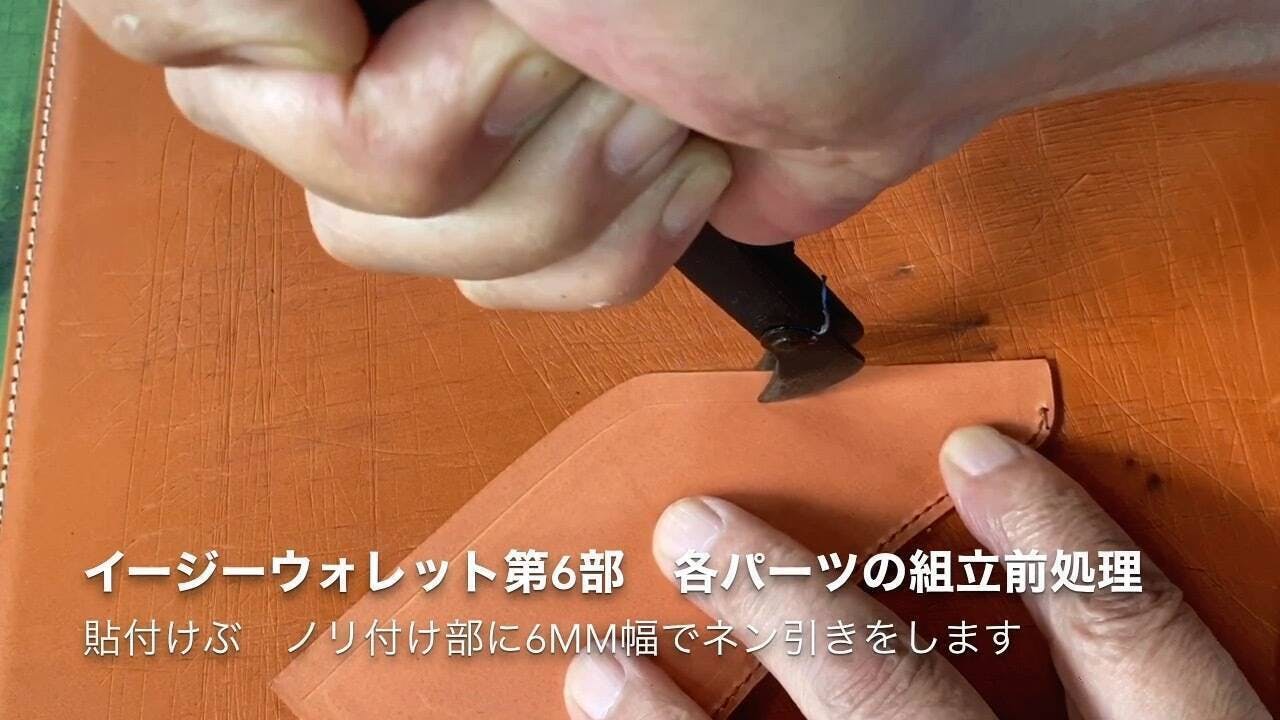 ガキ工程が終わった各パーツを組み立てるために革用の糊を使うのですが、ブッテーロはオイル分が強いので、そのまま塗布してもオイル分で剥がれやすくなってしまいます。
