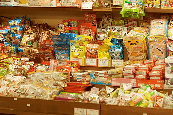 演目が伝統文化と現代アートのコラボなら、駄菓子屋さんのテーマはレトロフューチャーです。