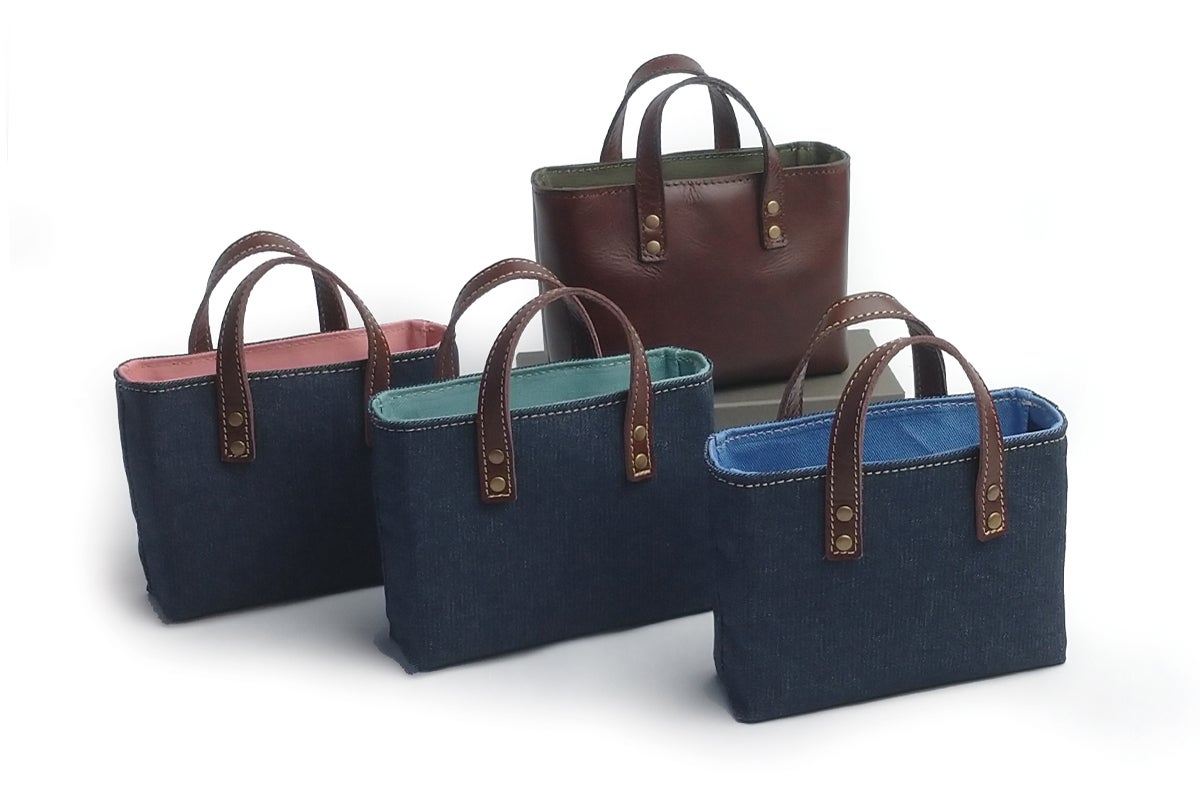 こちらのミニトートですが、紙の花札にはデニムのトートバッグを、革の花札が入れるようになっています。さらにデニムのトートの内装色はブルー・グリーン・ピンクからお選びいただけます。どちらのトートの内装も、クラボウ抗ウイルス加工の「クレンゼ®」を使用しています。