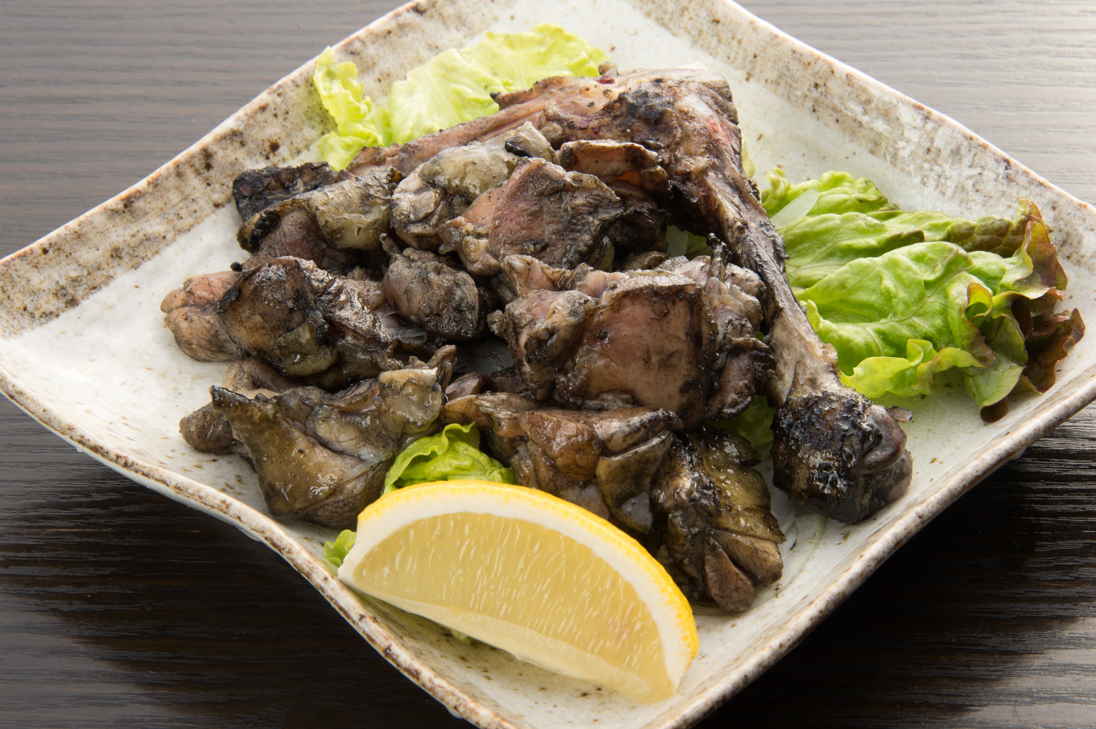 名物は宮崎から取り寄せた本場の地鶏赤鶏を”炭火で丁寧に焼き上げた地鶏もも焼き”。