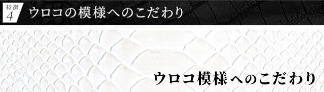 白蛇デザインレザーの美しいウロコ模様を活かすため、腹側のウロコ模様を強調するバックカットという手法を採用。さらに、熟練職人の匠の技により、ウロコ模様を綺麗に財布に活かした逸品に仕上げています。