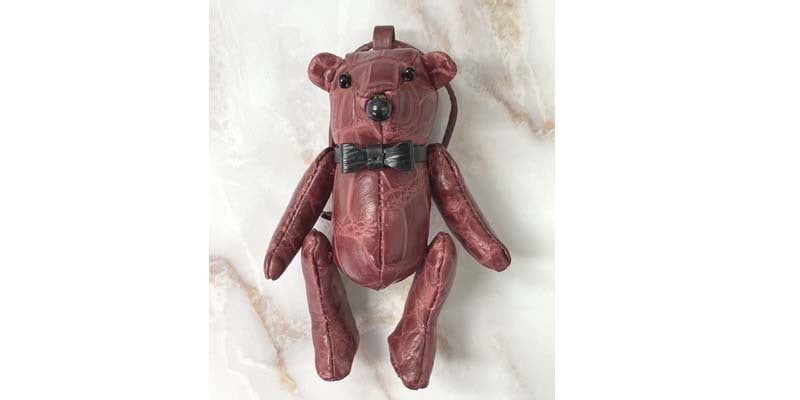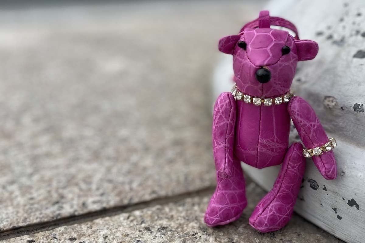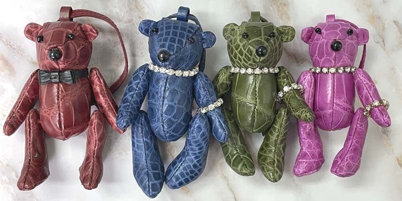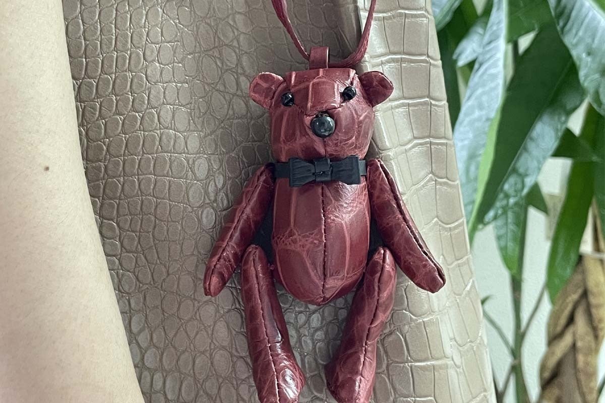 【革の宝石】クロコダイルの革で仕立てたキュートで可愛い熊のバッグチャーム&キーホルダーです。