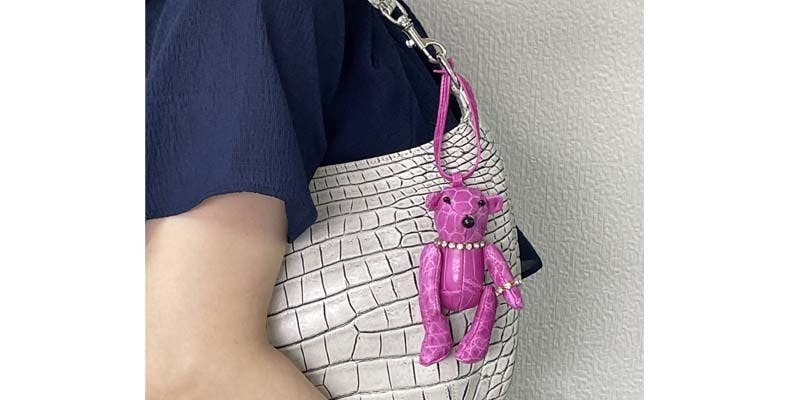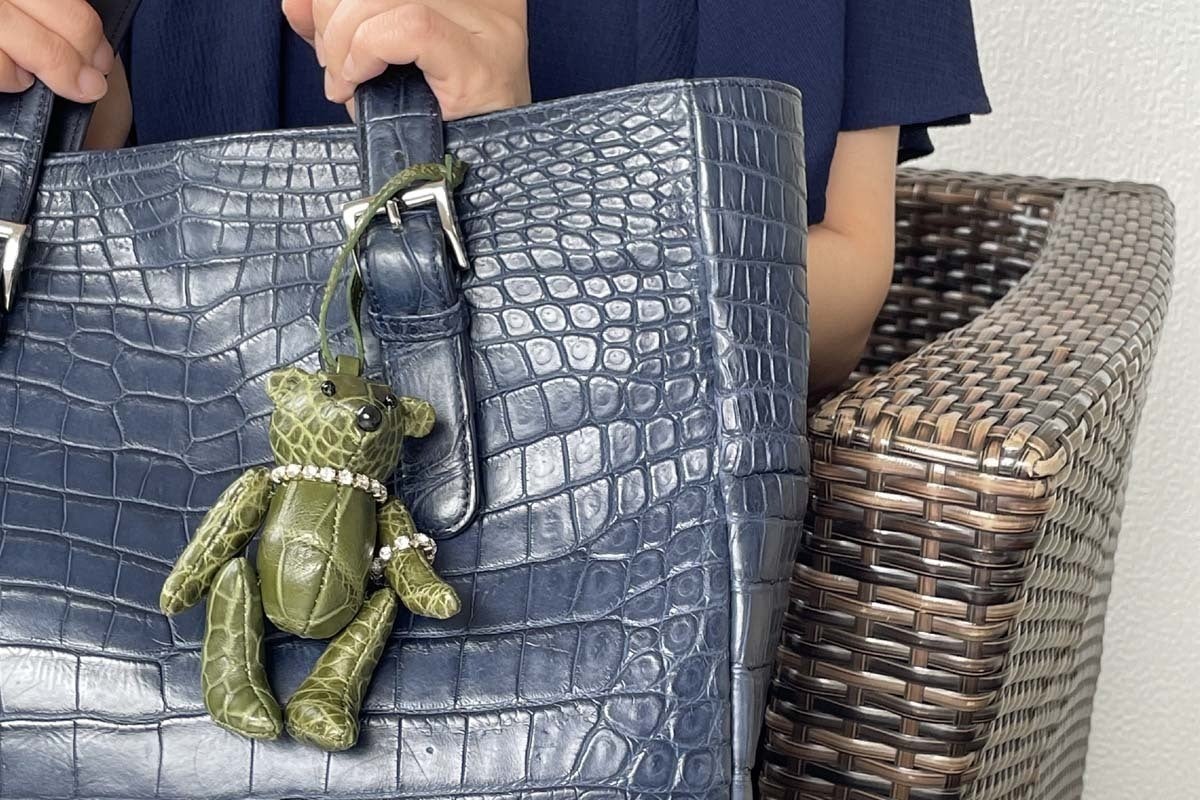 「革の宝石」本物クロコダイル革を使用した熊のバッグチャーム&キーホルダー