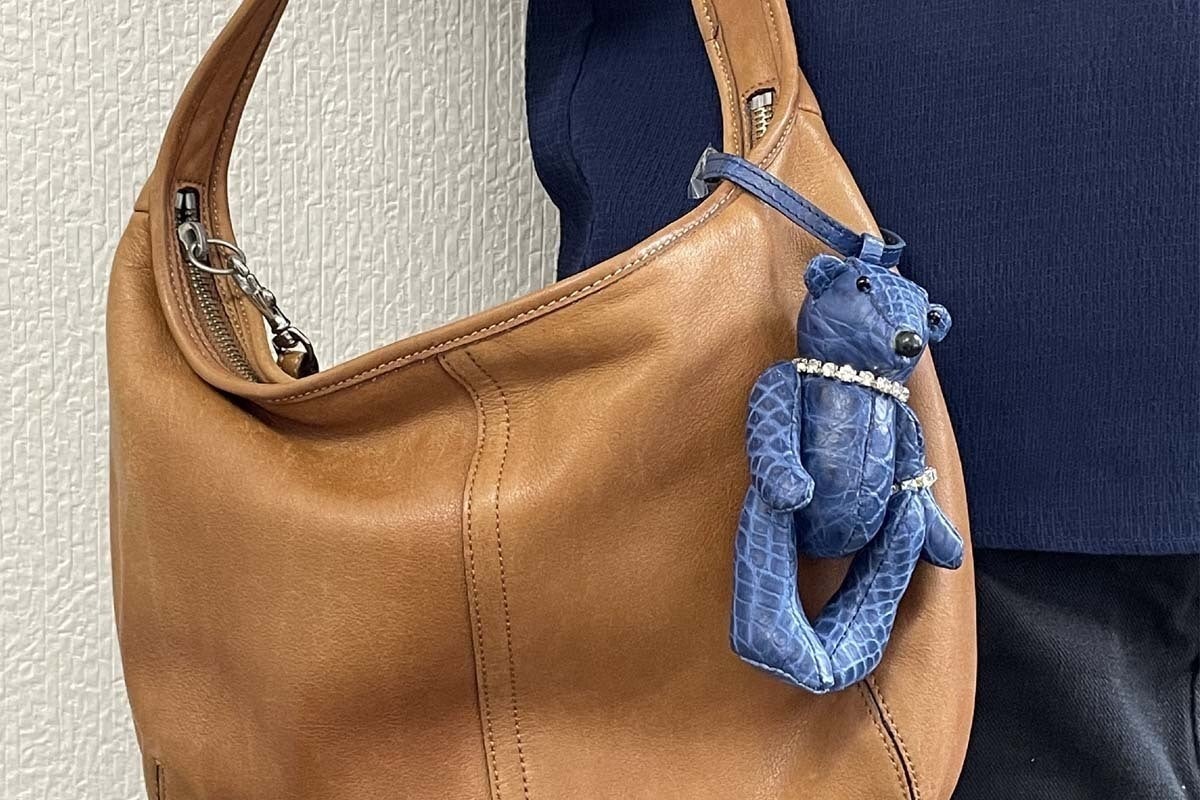 【革の宝石】クロコダイルの革で仕立てたキュートで可愛い熊のバッグチャーム&キーホルダーです。