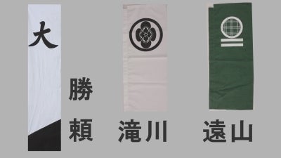 「織田」「徳川」「遠山」「滝川」の旗は、作品内にも登場しております。