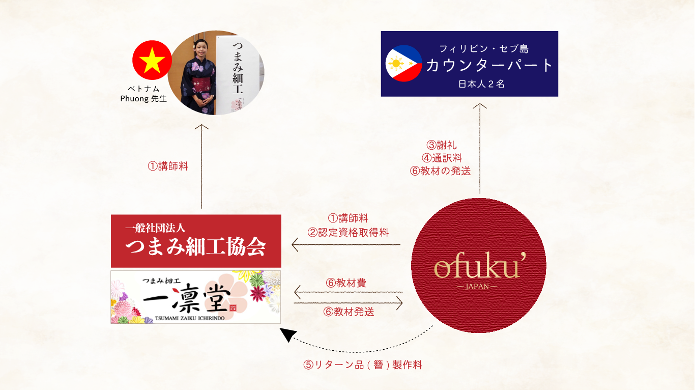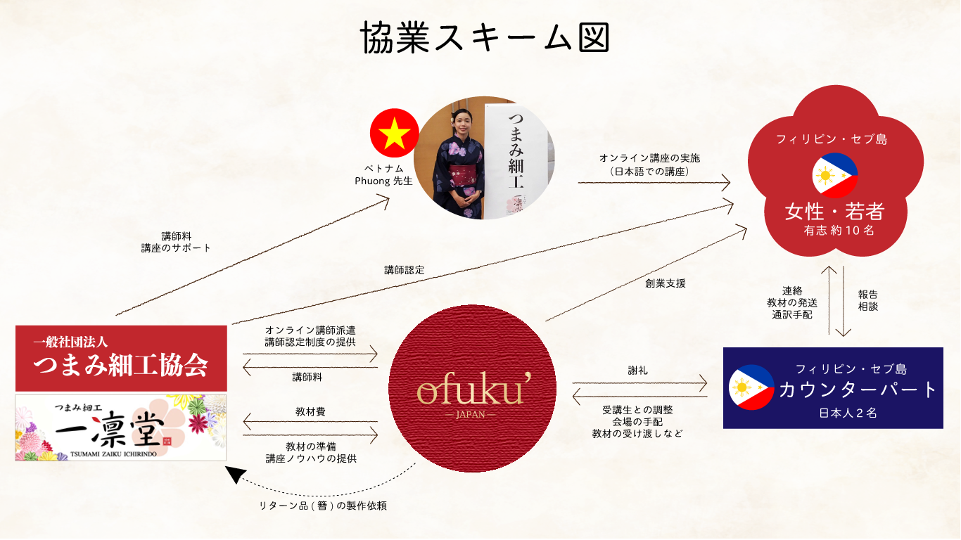 本プロジェクトでは、江戸つまみかんざしんの伝統文化を後世に残すための活動を行っている「一般社団法人つまみ細工協会」「つまみ細工 一凛堂」に後援をいただき、アジアの貧困家庭の女性に、オンラインつまみ細工講座を無料開講します。