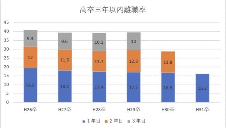 また、厚生労働省が2020年10月に公表した調査によると高卒で就職した人の三年以内の離職率は39,5%といわれています。