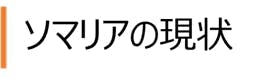 1980年代に勃発した内戦が全国に拡大し、1991年から2012年までの21年間無政府状態。正式政府が発足した現在でも、度重なる飢饉や難民・国内避難民が発生し続けています。