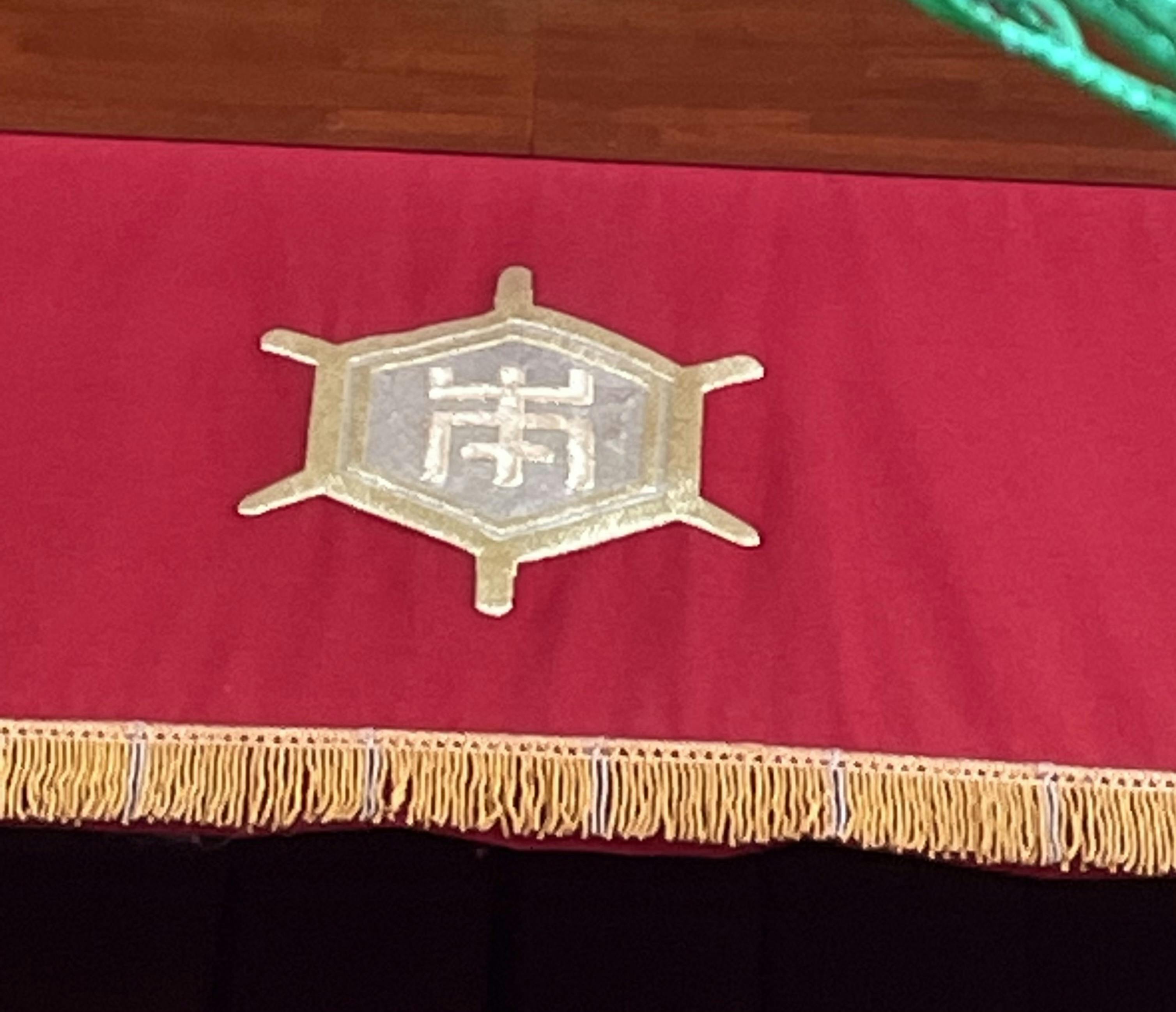 この学校は、我々浦嶋神社奉讃会メンバーの母校であり、校章は浦嶋神社が保有する室町時代に奉納された玉手箱に描かれている亀の甲を形だった模様をモチーフにした校章を掲げています。