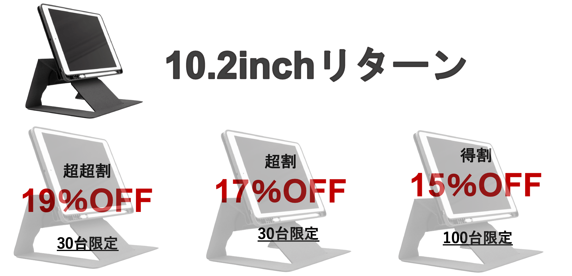 12.9インチ、11インチ、10.2インチ、それぞれ3段階の割引を設定させていただいています!