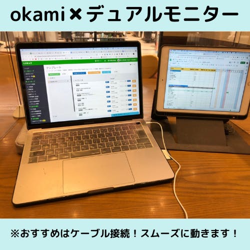 okamiにiPadを取り付けてパソコンとつなげれば、デュアルモニターとして