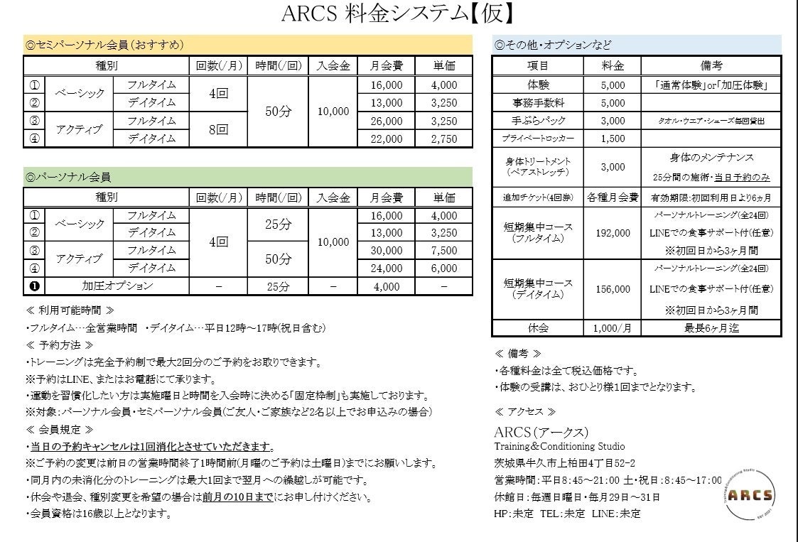 【Training&Conditioning Studio ARCS(アークス)について】
