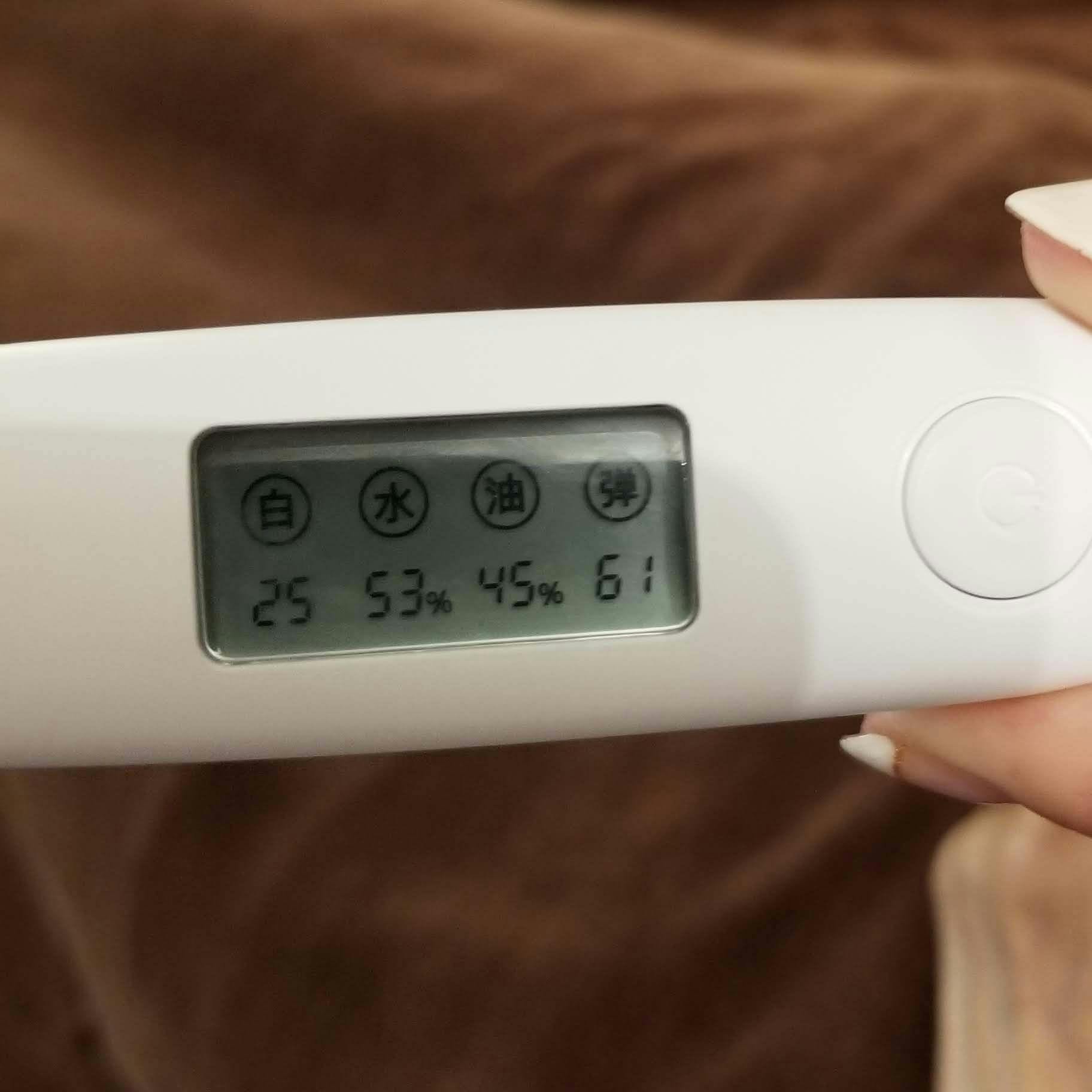 施術前 『白さ25』 『水分量53%』 『油45%』 『弾力性61』