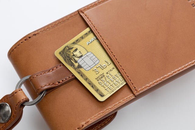 - シンプルなカードポケットを付けました。ボクは名刺一枚と1,000円札を1枚忍ばせています!