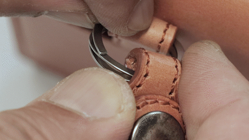 今回はストラップでも使用可能にするため、簡単にベルトループが着脱できるように”松村鋼機のスマートリング”を採用させていただきました。隙間が空いているのでとても簡単に着脱できます。まさに目からウロコです!ぜひお試しください。