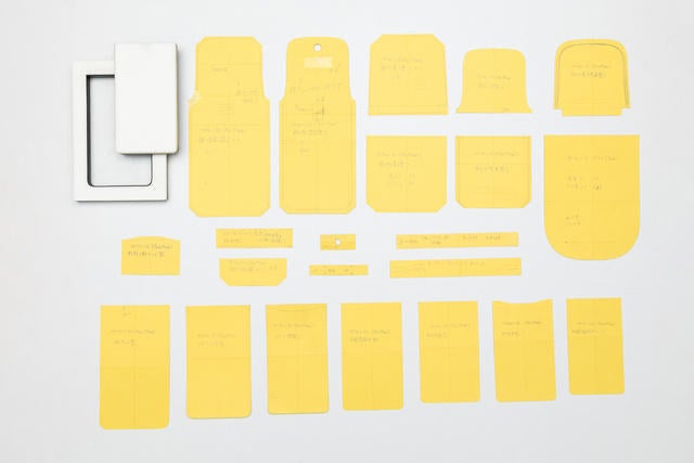 写真は型紙と絞りの型です。シンプルな製品ですが22パーツにも及びます。これらのパーツの厚さを調整し、強度を見極めながら製作しています。