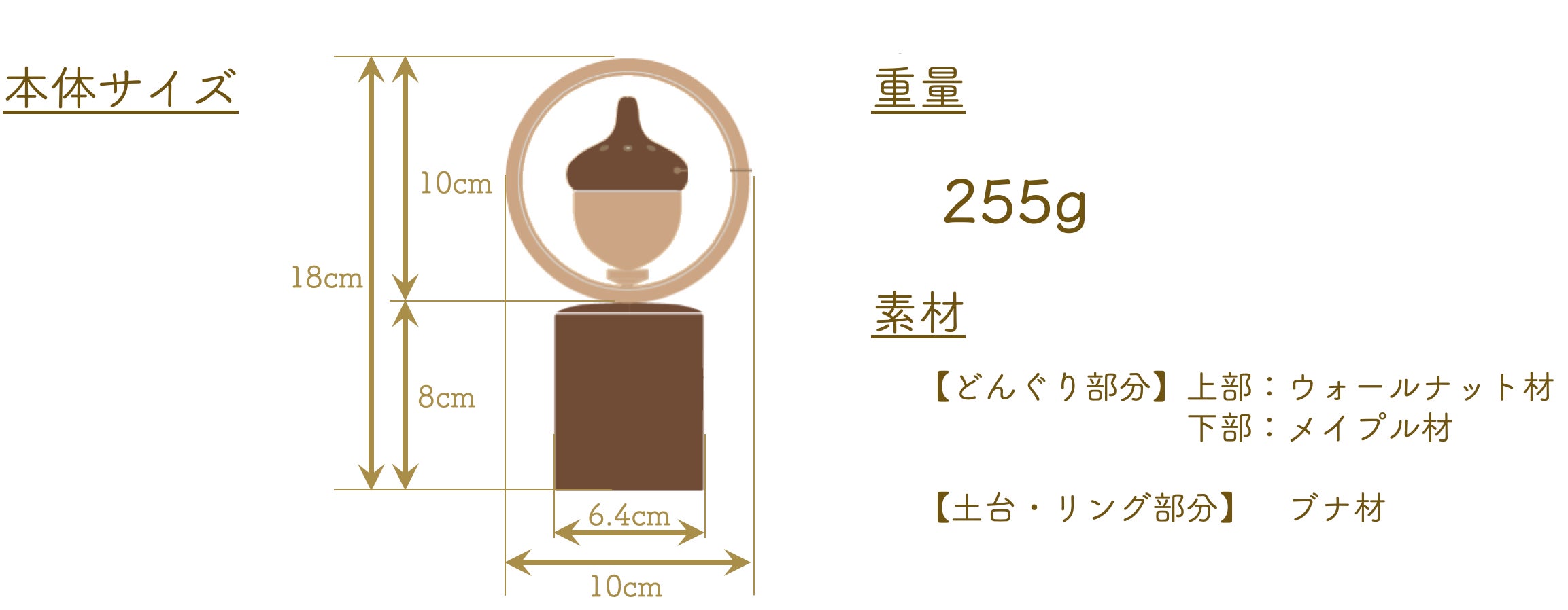 A3.動作音はほとんどありません。コマ部分(どんぐり部分)と木製リングの間を調整することで回転中の音をほとんど出なくすることができます。