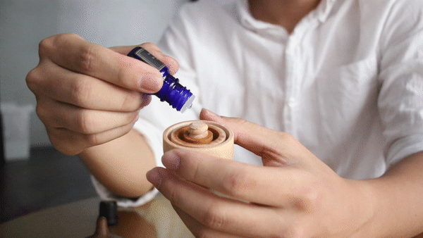 ●Step2 内部の「アロマタンク」部分にお好きなエッセンシャルオイルを数滴垂らします。