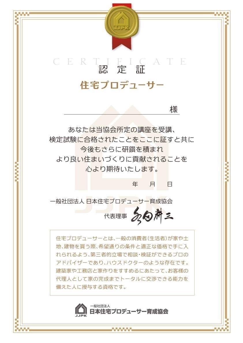 「住育士」の認定証です