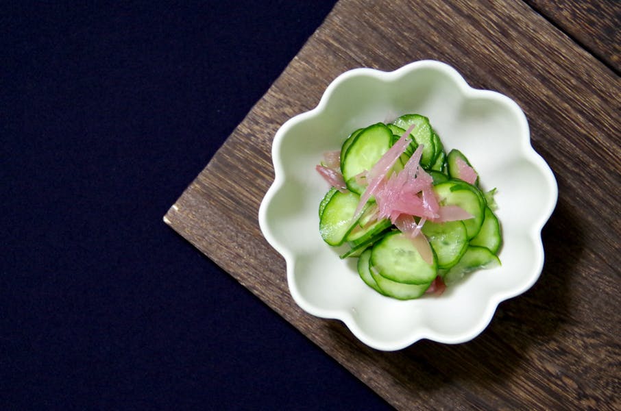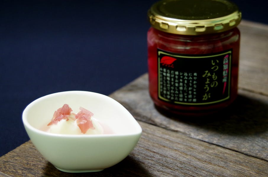 また、きゅうりの酢の物に、いつものみょうがの汁と、刻んだ身をのせると、みょうが風味の利いた味変になり、別のメニューとして楽しんでいただけます。