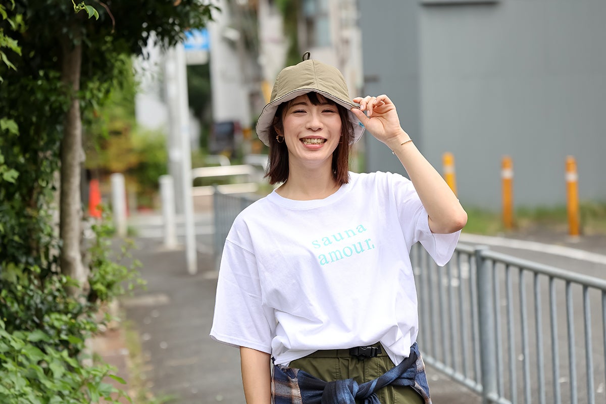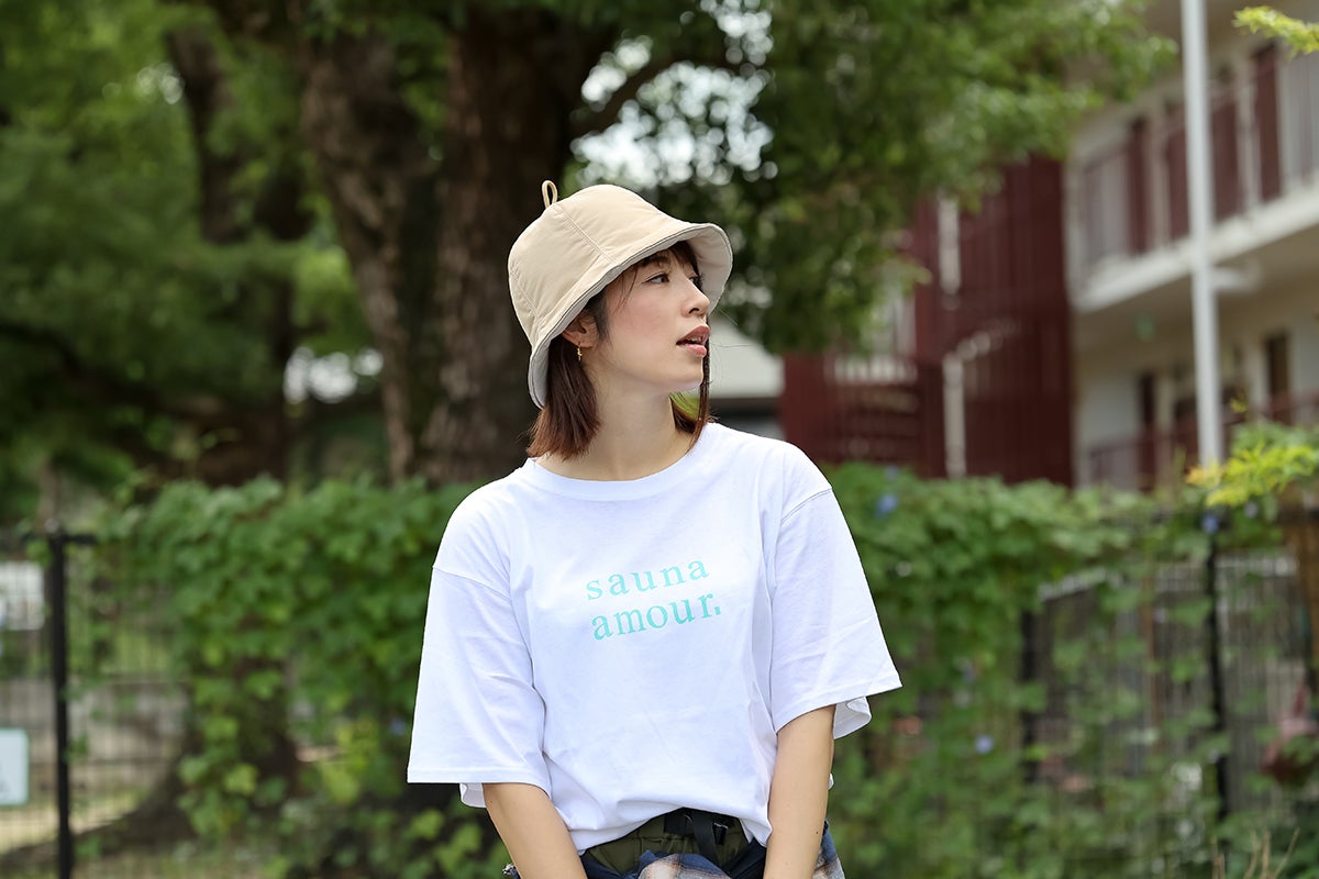 形は現在男女問わず流行中のつばが短めのバケットハットに寄せ、頭頂部の紐がサウナハットらしいアクセントになっています。
