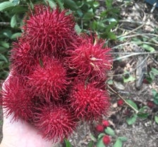 赤い毛の生えたような不思議な見た目の果物ですが、実はとてもとても甘くて美味しく、ライチのような味がします。皮はとても柔らかいので、手で剥いて食べます。