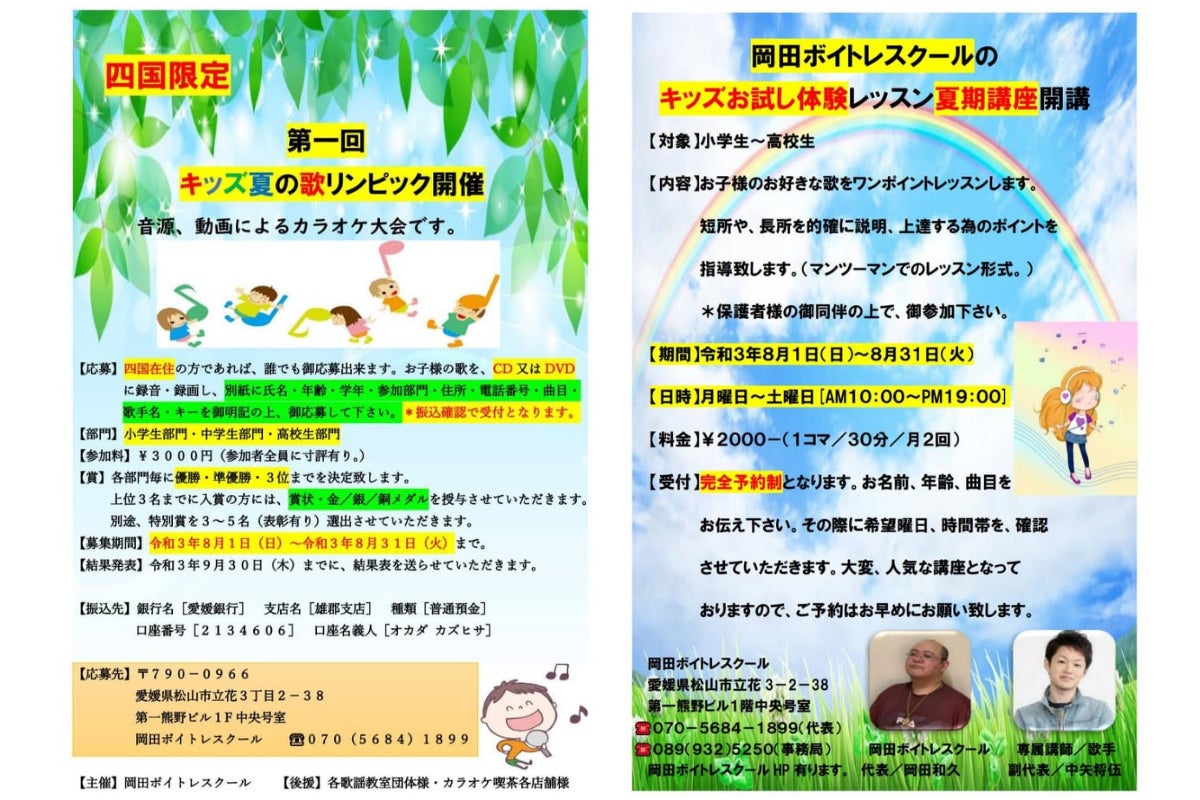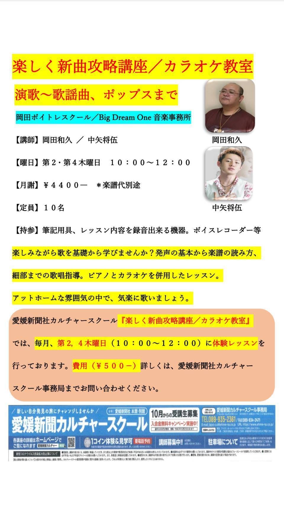 私共、岡田ボイトレスクールは設立21年目を誇るスクールで、愛媛県松山市で活動しております。