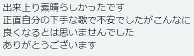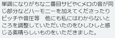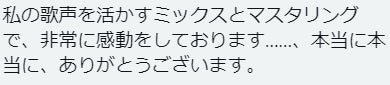 今ではその言葉通りなお互いにフォローしあって楽しく仕事をさせていただいてます。 これからもお客様が気持ちを込めて歌われた曲をより良い作品にできるように、丁寧にお仕事を頑張っていきます。
