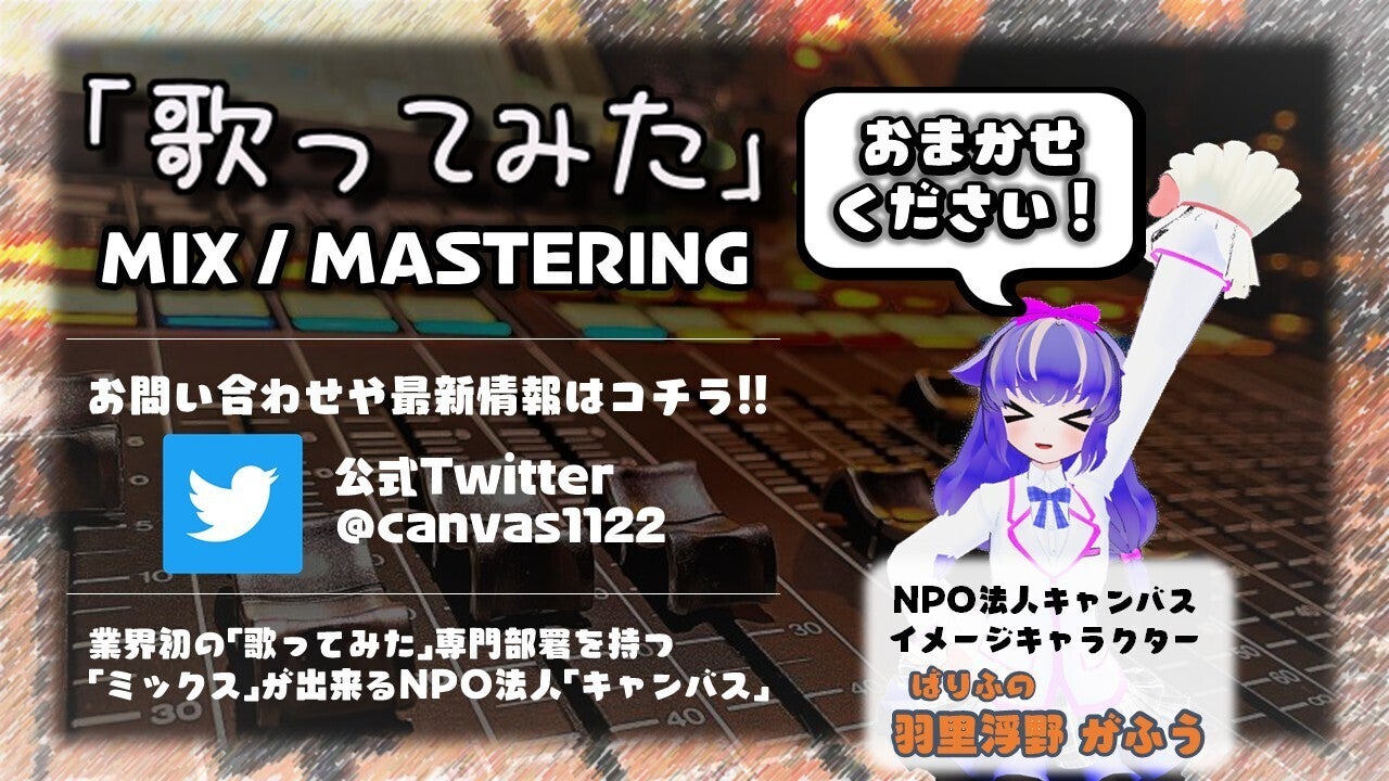 キャンバスでは主に、「歌ってみた」に欠かせないMIXマスタリング(以下MIX)などの依頼受注を行っております。